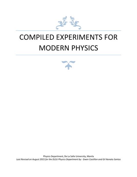 At present you are looking for an Modern Physics Laboratory Experiment Solution Manual example that we provide here within some form of document formats such as PDF, Doc, Power Point, as well as images that will make it simpler for you to create an Modern Physics Laboratory Experiment Solution Manual yourself. For a more clear look, you are able to open a few examples below. All the examples about Modern Physics Laboratory Experiment Solution Manual about this website, we get from several sources so you can create a better file of your own.